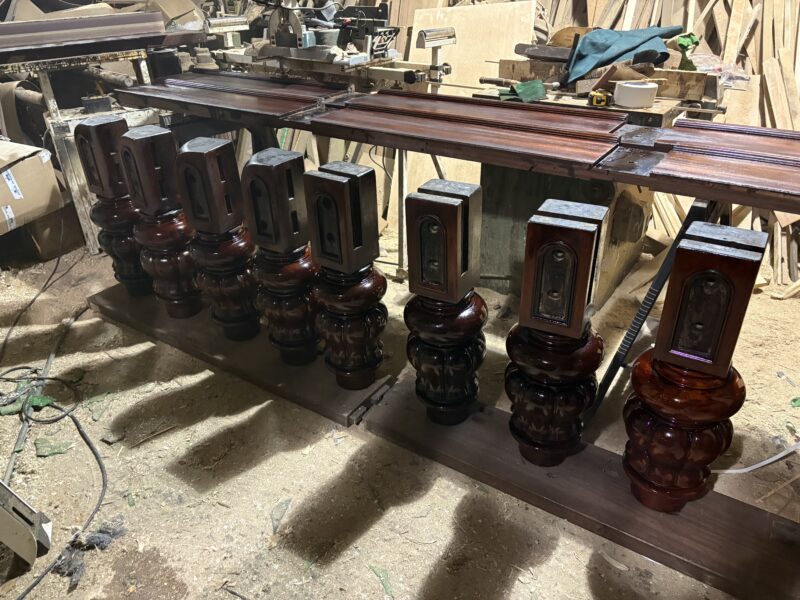 A mahogany full sized snooker table, made by Burroughes & Watts, dating from the 1910s. This table stands on 8 massive turned & carved legs and fetaures its original 2″ thick bolted Welsh slate bed. Provenance: originally installed in Powis Castle.