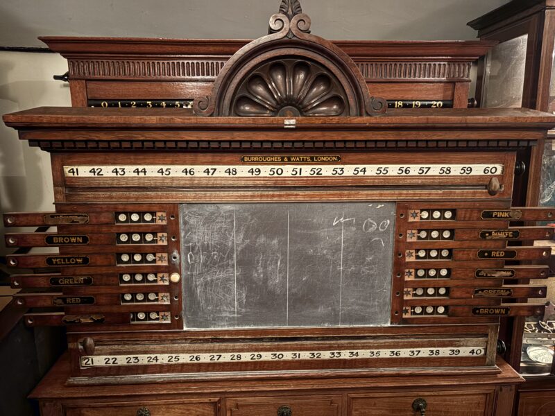Antique Edwardian Burroughes & Watts oak life pool combination scoreboard
