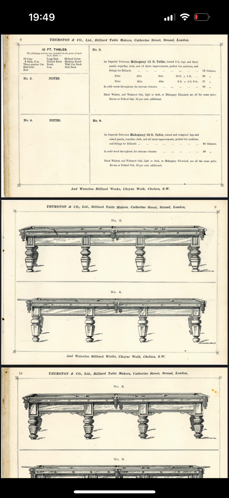 An antique oak full size no.4 design table manufactured by Thurston of Catherine St, London. The table features a tapering octagonal leg, unbelievable honey English oak grains and a 1 3/4″ bolted Welsh slate bed. This truly is a country house billiard table.