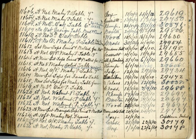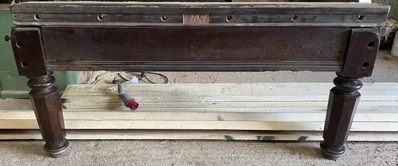 Shown is the fantastic timbers of the table stripped and ready for re-polishing, as well as a photo of the Thurston ledger entry (no.11618) for when the new Slates were fitted c.1910.